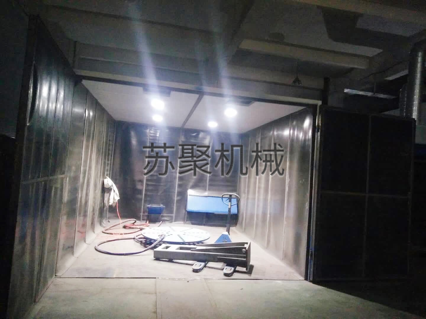 自動機械式回收噴砂(丸)房為平車往復式專用噴丸機,它由噴丸室體、噴丸器、螺旋輸送機、提升機、分離器、彈丸控制系統、照明系統、除塵系統、輸送平車、電控系統等部分組成。